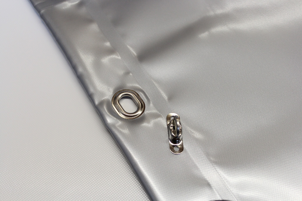 | Ösenmaterial: | rundum Ovalösen inkl. Drehwirbel Messing vernickelt, Nirosta Ösen oder Ösen schwarz lackiert sind gegen Aufpreis erhältlich |