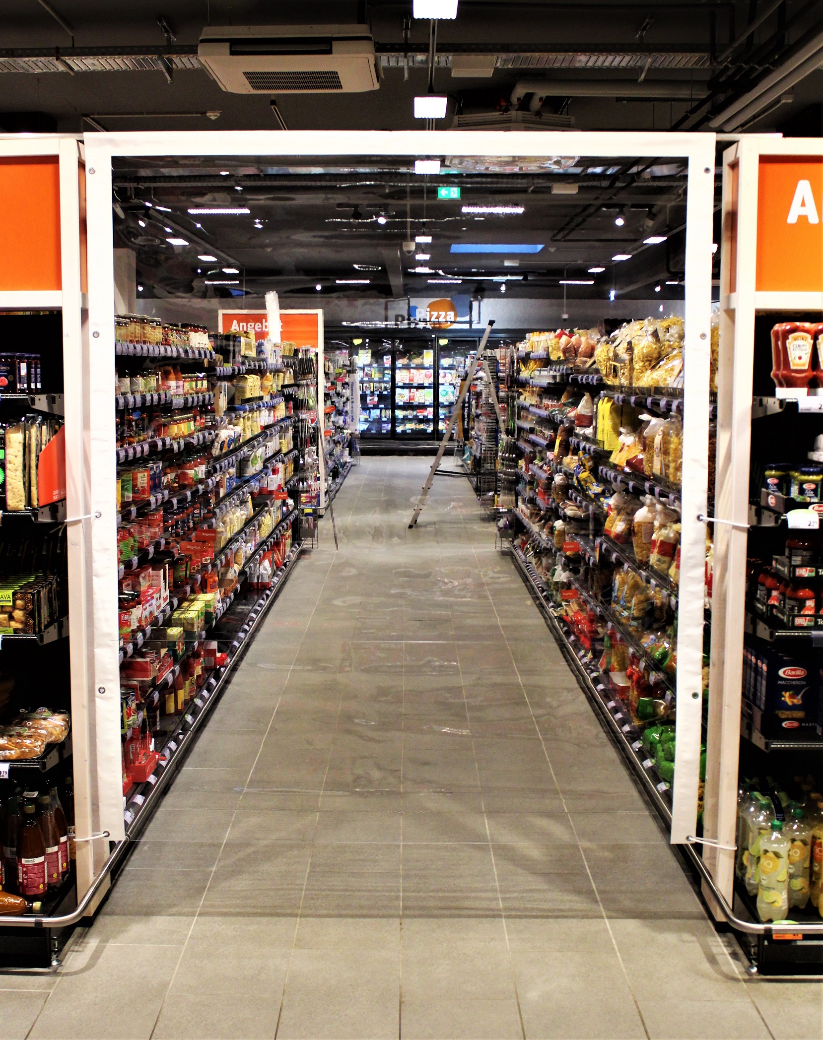 Mit der Gangabtrennung/Laufwegabtrennung werden Gänge zwischen Regalen kontrolliert zum Begehen freigegeben oder gesperrt. Dadurch können Sie die Laufwege Ihrer Kunden bestimmen und festlegen.